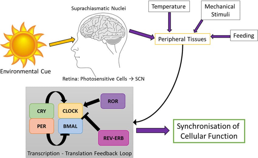The brain is signaling the rest of your body while the light exposure changes through the day. Changes in light regulation impact hormones, neurotransmitters, activity levels, mood, and several fundamental biological processes.